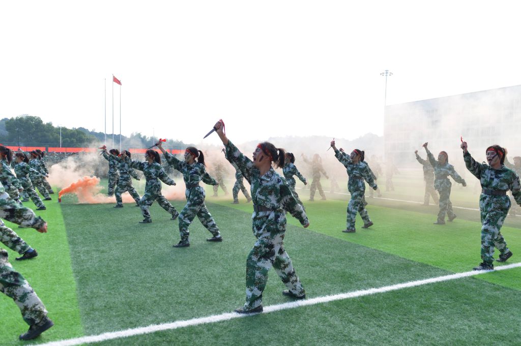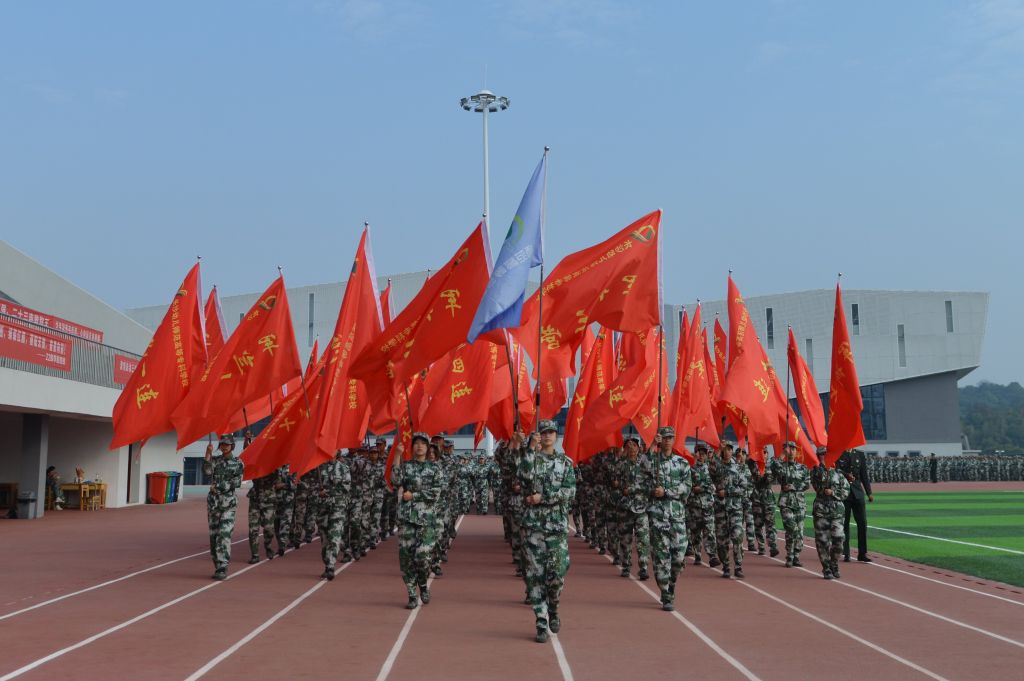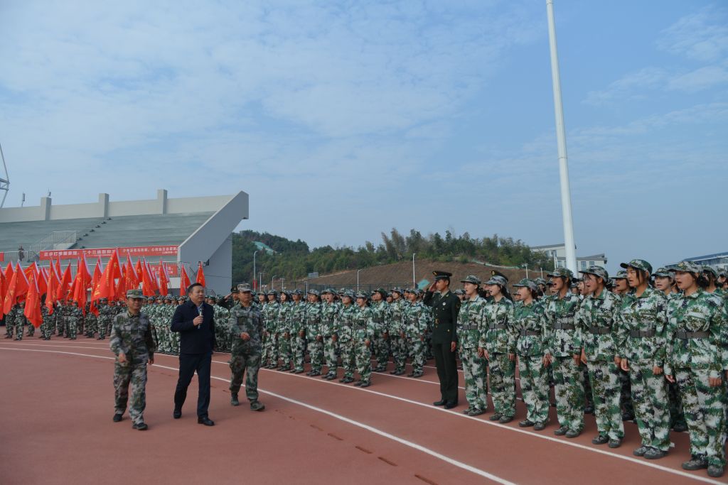 在庄严的升旗仪式中,大会正式开始。2022级受训新生迎接校长李毅检阅。新生们气宇轩昂,用最饱满的热情喊出口号,向学校领导、老师和教官们展现军训成果。