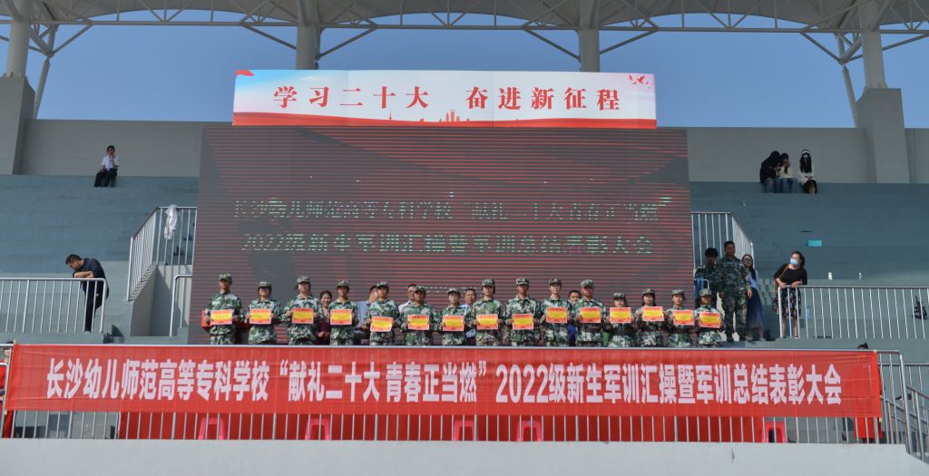 文化方阵表演过后,军训承训团总教官李剑做军训工作总结,学保处处长彭繁珍宣布获奖名单,优秀学员、优秀寝室、优秀连队辅导员及优秀组织奖获奖学院党总支书记依次上台领奖。