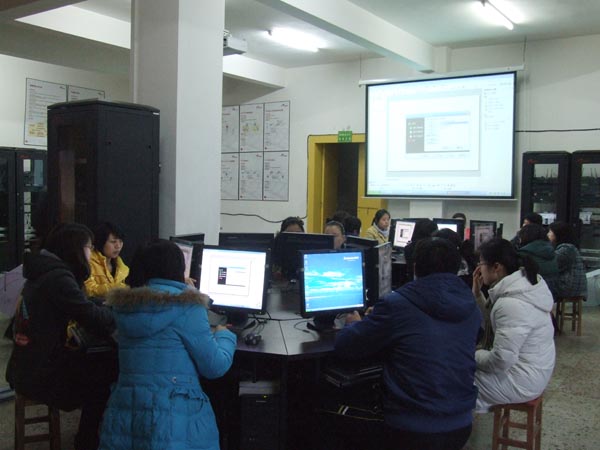 3月24日下午,在学校教务科的组织下,一场青年教师“信息技术培训”又在我校计算机网络技术实训室举行,本次培训活动由丁星明老师担任主讲。在培训过程中,丁老师直观生动的演示和讲解给老师们很大的启发和帮助,大家都觉得通过这样的培训掌握了更丰富的课件制作知识,解决了课件制作中的一些难点问题,有助于大家更好地掌握现代信息技术,提高教育教学的效果。
