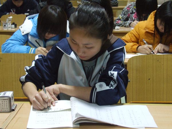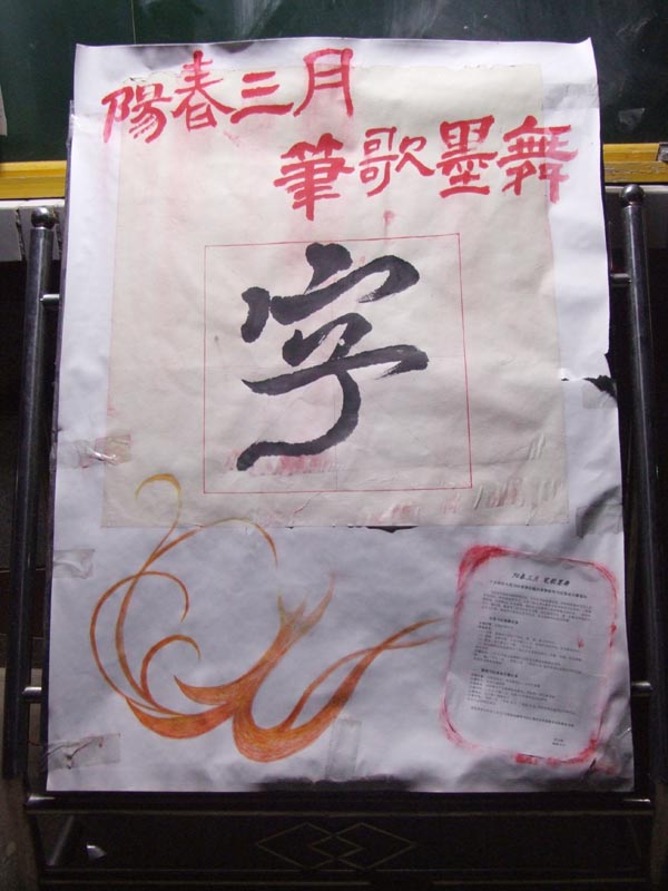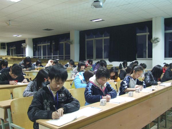 为了弘扬中华民族书法文化的光荣传统,培养全体学生认真书写的良好习惯,促进学生的书法兴趣,2010年3月25日晚,学校教务科组织举行了学生书法比赛。