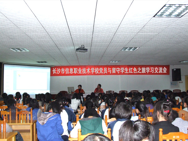 4月23日晚,长沙市信息职业技术学校四楼会议厅春意盎然,欢声笑语不断,学校党委书记左玉辉同志与全校留守学生欢聚一堂,举行党员与“留守学生”红色之旅学习交流会。大会由学生科科长刘建乐主持,全校留守学生参加了学习交流会。