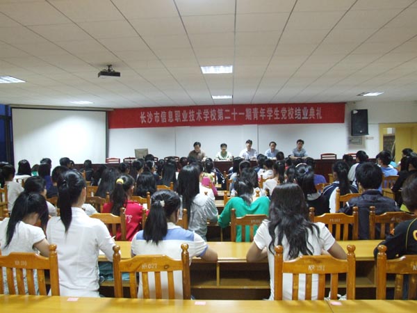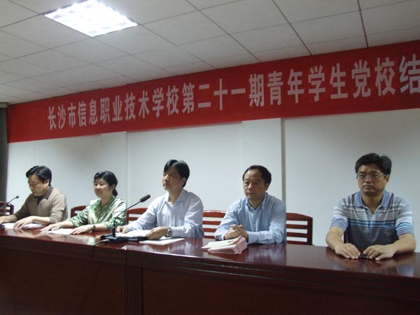 6月8日晚,在长沙市信息技术学校校长郭正良同志的主持下,我校第二十一期青年学生党校结业典礼在四楼会议厅隆重举行。学校党委书记左玉辉、副校长刘余良、纪委书记李深山、副校长李慧中出席了大会。