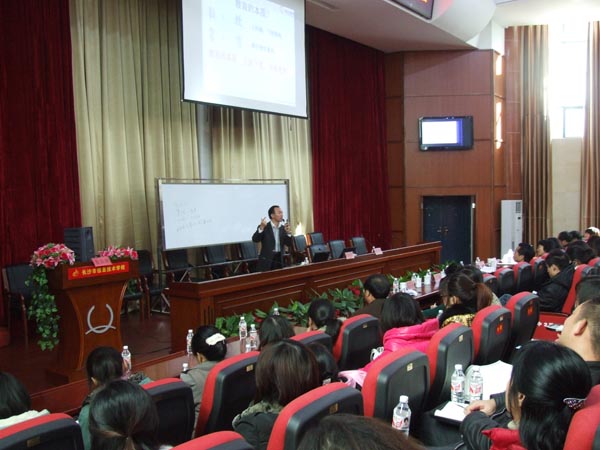 随着热烈的掌声,深圳上维国际教育集团金牌讲师黄华登上讲台,进行了题为《幸福教师的五项修炼》的精彩培训讲演。教育专家黄华从“负责任,尽本分;自他交换;结果导向;系统结果;个人、学校、组织的终极成功之道”五个方面进行了阐述。在长达三个多小时的讲座中,教育专家黄华以“思想→决定→过程→结果”,“习惯→性格→命运”为线索,引经据典,旁征博引,不仅弘扬民族文化,而且强调人文精神,还关注学生作为“社会人”进行整体发展,让大家在轻松、愉快、激动中注入新课程理念的新鲜血液,享受了一次精神的洗礼,教育理念有了一次脱胎换骨的转变,相信在今后的教育教学工作中,老师们能更好地完成“传道、树德、授业、解惑”的责任。