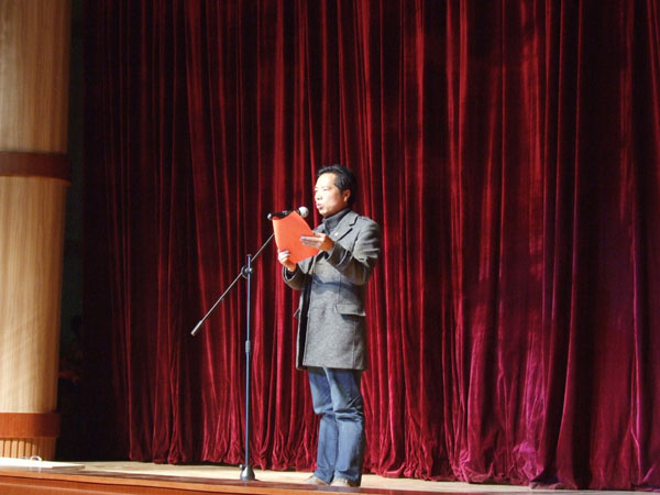 演出前,学校校长郭正良同志作了热情洋溢的新年致辞,郭校长回顾了学校一年来取得的成绩,提出了新的一年的奋斗目标,并给全校师生送上美好的祝愿。郭校长相信,有上级领导的支持,有全校师生的勤奋努力,长沙市信息技术学校的明天必将更加美好。郭校长希望全校教职工在新的一年里继续保持良好的工作状态和创业精神,精诚团结、开拓创新、与时俱进、为把我校建成全国一流的示范性学校而不懈努力!