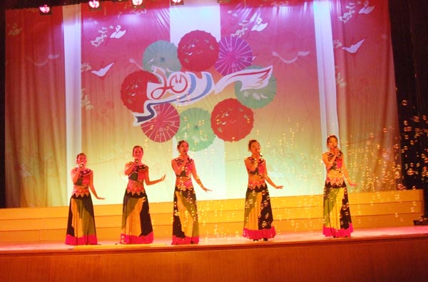窗外寒风凛冽,馆内春意浓浓。12月30日晚7时,在新年的钟声即将敲响之际,长沙市信息技术学校2000多名师生欢聚一堂,在汇美馆隆重举行2011年元旦文艺汇演,用自己动听的歌喉和优美的舞姿共同欢庆新年的到来。