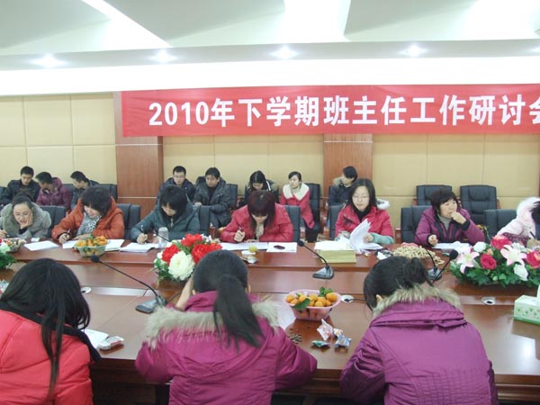 班主任是班级管理的领导者和组织者,是学校常规管理的抓手。为了进一步加强班主任队伍建设,推动班主任工作研究,推广班主任管理经验,提高班主任班级管理的实效性和德育工作的针对性,2011年1月17日下午,长沙市信息技术学校在广益厅举行了班主任工作研讨会。会议由学生科科长刘建乐主持。