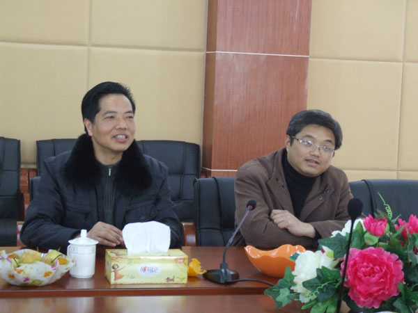 学校校长郭正良(左)与就合作事宜作了重要讲话