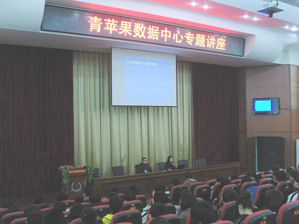 孙主任向同学们详细介绍了青苹果数据中心的发展历程、公司机构、主营业务以及该公司2011年的人才需求计划,并对企业文化、公司相关规章制度及相关人才的具体要求等内容进行了详细讲解。孙主任还结合自身的工作经历,对同学们提出了殷切的希望,希望同学们在学校练好技能,提升自我修养,为以后的职业生涯打下基础,热忱欢迎大家到青苹果数据中心去工作。同学们都对该公司的规模、管理、待遇等表现出极大的兴趣,相信他们在这里所接受的企业文化和企业管理制度的教育一定会让他们终身受益。