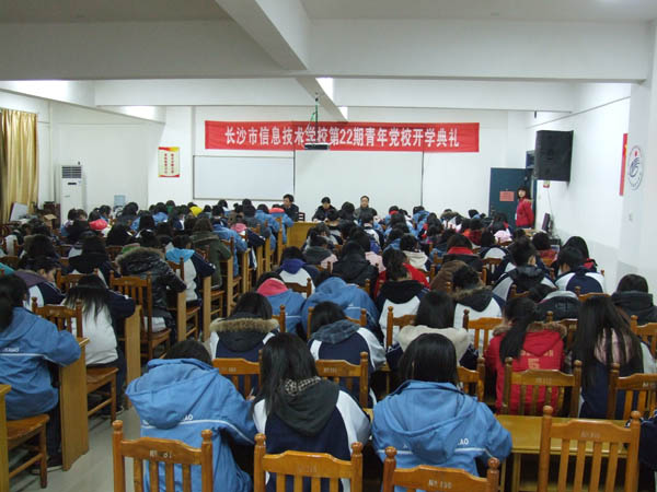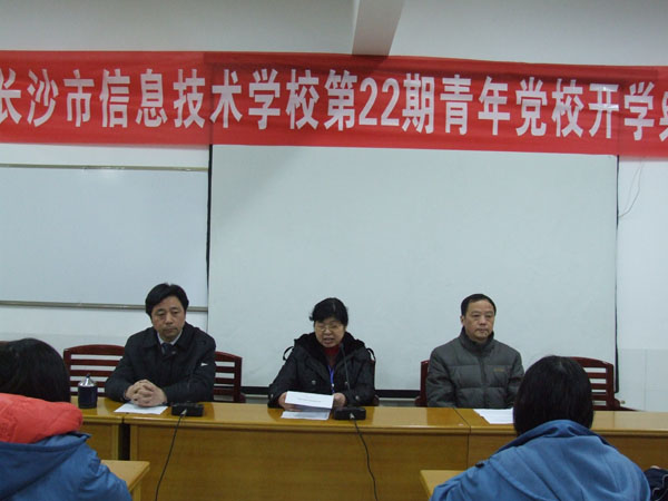 3月22日晚7点,在庄严的国歌声中,长沙市信息职业技术学校第二十二期青年学生党校开学典礼在道馨楼宁觉厅举行。学校党委书记左玉辉,副校长刘余良、纪委书记李深山等出席了开学典礼。开学典礼由纪委书记李深山主持。