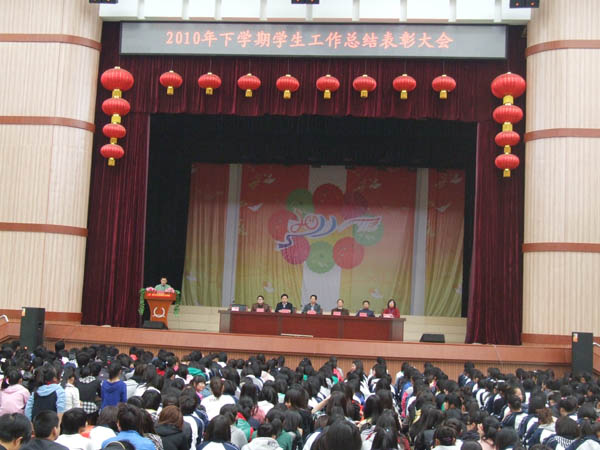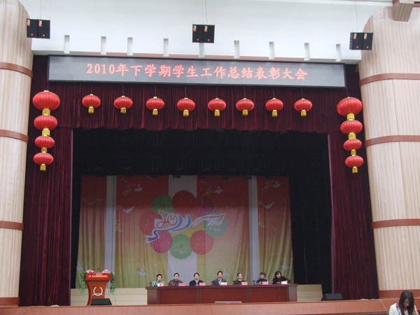 本次会议主要目的是总结2010年下半年学生工作经验,表彰一批先进班级、先进典型,营造一种“学先进、赶先进、当先进、超先进”的良好氛围。在总结表彰大会上,学生科科长刘建乐向全校师生作了工作报告,李慧中副校长宣读了学生会工作先进集体、先进个人的名单,校领导分别为先进集体、先进个人、奖学金获得者颁发了奖状和证书。