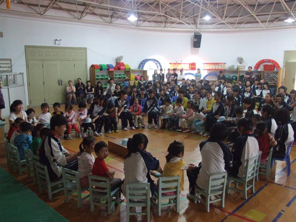 随后,全体青年党校学员观摩了幼儿的早操活动,其队形变换多样,动作难易结合,表演富于游戏化,同学们倍感新鲜,异常兴奋。在张园长的安排下,青年党校学员认真聆听了幼儿园大班的《大海睡了》语言课和《传帽子,嗒嗒嗒》音乐课,两位教师生动的语言,加上激情的表演,赢得了同学们的阵阵掌声。