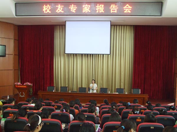 杨利娟校友从事幼教工作近20年,有着丰富的理论知识与长期的实践经验,创办了深圳市都市宝贝早期教育咨询有限公司。这是是一家从事婴幼儿早期教育服务及研发机构,致力于全面关注儿童的体商(PQ)、智商(IQ)、情商(EQ)健康发展,研究建构了一整套科学的婴幼儿教育指导一体化解决方案,自主研发了《3Q宝宝亲子潜能开发课程》、《3Q宝宝亲子特色课程》、《3Q宝宝家长课程》等教材、课件、教法、教具、和学具,业务范围涉及招生服务、师资培训、教学中心及亲子园全国连锁、玩教具销售、教育教学技术咨询服务。杨利娟校友的讲座深入浅出,既有丰富的理论知识性,又有很强的操作性。形象生动的精彩讲座,赢得全体师生的阵阵掌声,令在场学生受益匪浅。