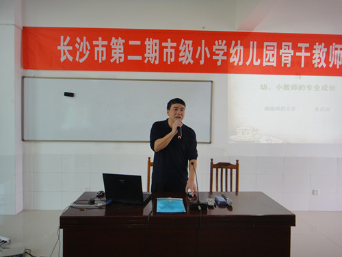 9月24日上午,长沙市幼小骨干教师预备培训班在长沙市小学教师培训中心(长沙市信息技术学校)隆重举行。开学典礼由长沙市小学教师培训中心主任刘余良同志主持。长沙市教科院课题规划所所长段晓宏、湖南师范大学教授张良田、长沙市小学教师培训中心科长胡喜鸣出席会议。来自全市小学和幼儿园的近150余名骨干教师参加了本次培训.