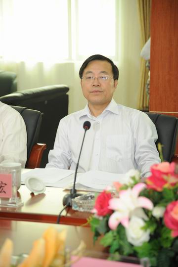 长沙市贯彻落实《教育规划纲要》情况汇报会在我校举行,图为长沙市人民政府副市长何寄华(中发言者)作工作汇报