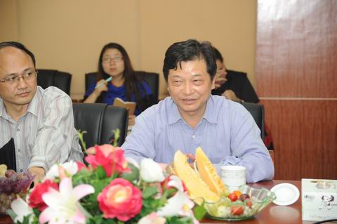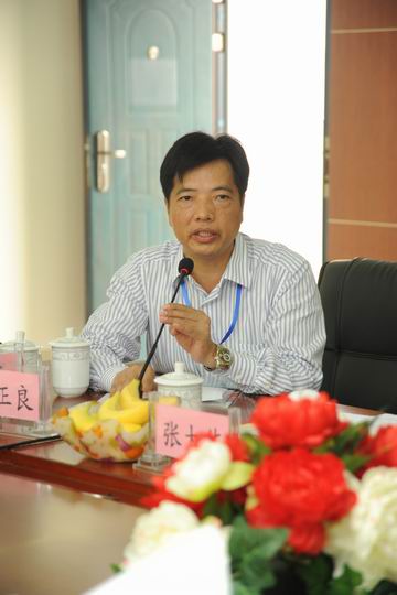图为我校校长郭正良(右一)向检查组领导介绍基本情况