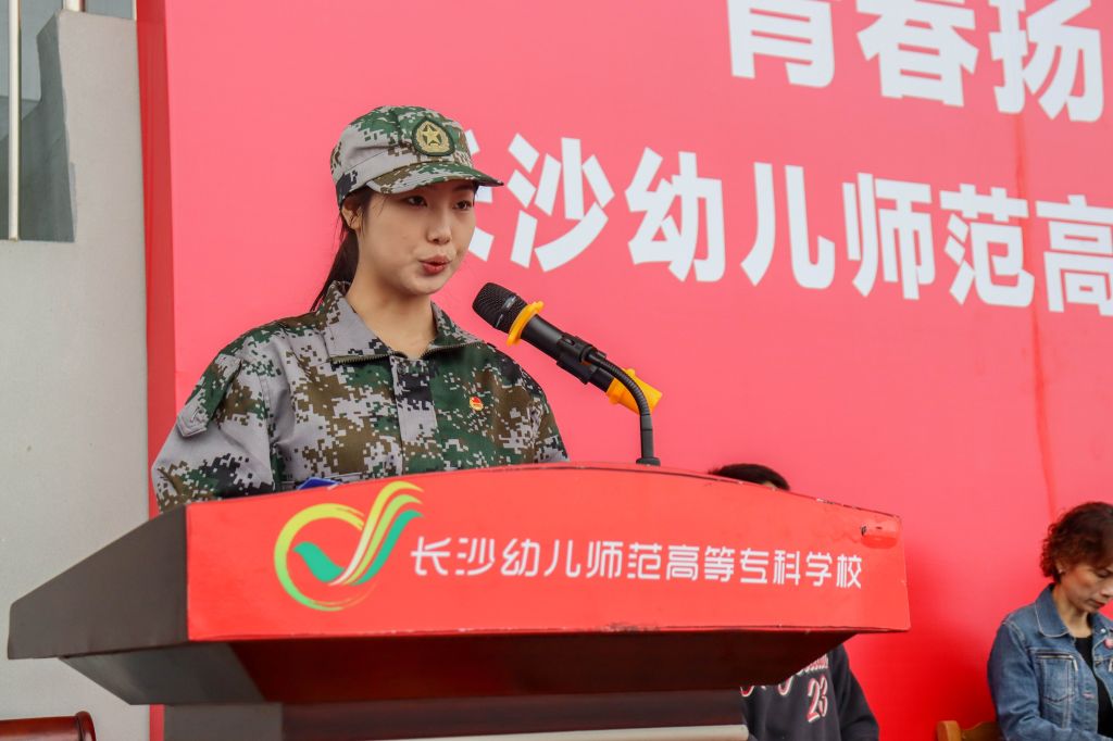 来自艺术学院美教二班的许羿涵含同学作为学生代表发言,她共勉各位同学要有克服困难的勇气和决心,要发扬团结拼搏的精神,激励同学们要以饱满的热情和昂扬的斗志投入到军训和今后的学习生活中,去战胜一切艰难险阻,实现自己的人生价值。之后,全体学员进行庄严宣誓。
