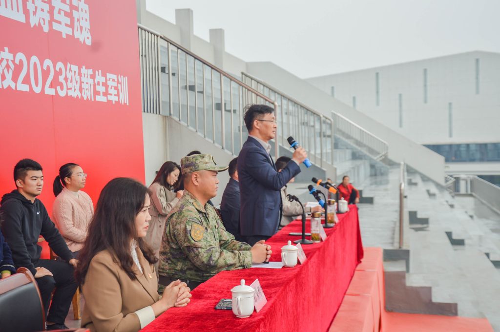 校长李毅在致辞中勉励全体新生要以中国志气彰显青春担当、以中国骨气挺起精神脊梁、以中国底气赢得美好未来,积攒厚积薄发的底气,踔厉奋发,赢得主动,赢得未来,成为解决国之疑难的“强国一代”。他对2023级新生表达了期望,一是要厚植家国情怀,做有志气的青年人;二是要锤炼过硬本领,做永跟时代的青年人;三是要拥有强健体魄,做有朝气的青年人。他希望同学们在军训中锻炼自我、提升自我,为新学期、新目标、新征程打下坚实基础。