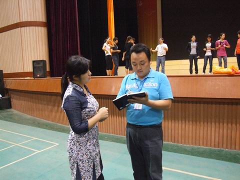节目执行总监陈郁正在指导节目演出准备