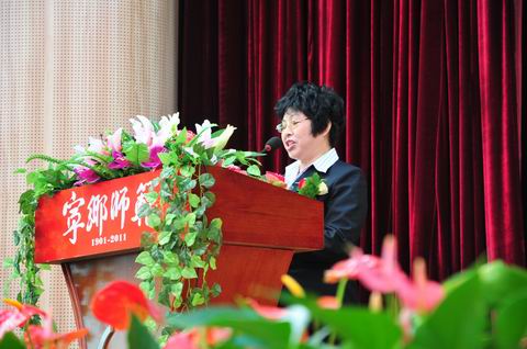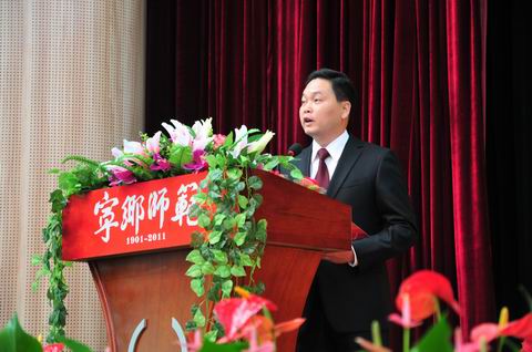 学校校长郭正良首先致辞,向出席校庆典礼及关心、支持湖南省宁乡师范学校建设和发展的各级领导、嘉宾、校友表示热烈欢迎和衷心感谢!在讲话中,校长郭正良回顾了建校至今虽历经艰辛却不忘先志为国育才的光荣历史,总结了朴实文明、敢为人先的优良传统,表达了宁师人恰逢发展机遇,团结携手,开拓进取,共同开创学校更加美好未来的宏伟愿望。湖南师范大学树达学院党委副书记杨智勇博士代表校友讲话,深切怀念昔日在校时光岁月,表示要永远铭记恩情,时刻关注母校发展,为学校教育事业发展贡献自己力量。湖南省教育厅副厅长王键、长沙市人民政府副市长何寄华等领导分别讲话,对学校110年来,在师范教育和职业教育不同历史阶段中,建设和发展所取得的辉煌成就给予充分肯定,对学校科学发展、再创佳绩寄予厚望,希望湖南省宁乡师范学校以这次庆典为契机,秉持优良传统,坚持育人为本,不断深化教育改革,创新人才培养模式,使这所百年老校永葆青春活力,为加快区域经济发展提供好有力的人才保证和资源支撑,为全省实现转型跨越发展的宏伟目标而做出更大贡献。
