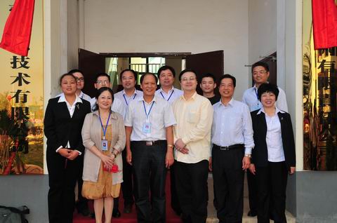 长沙市教育局副局长王建林(前左三)、长沙职教基地管委会副主任封纪琴(前左二)、湖南省宁乡师范学校校长郭正良(前右二)、党委书记左玉辉(前右一)及校领导与校企合作单位诺贝尔摇篮集团董事长谢庆(前右三)、副总经理章洪(前左一)、联想集团中南区客服主管王波(后左二)、长沙市金蕾信息技术有限公司总经理何重兴(后左三)长沙金卓信息技术有限责任公司经理刘作(后右二)在学校公司前揭牌后合影。