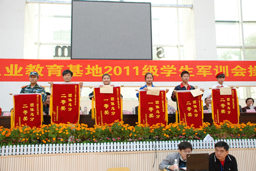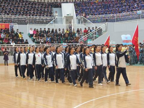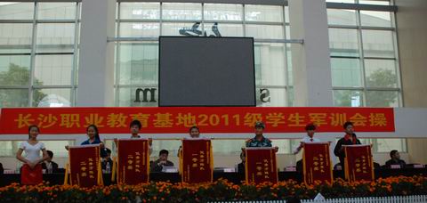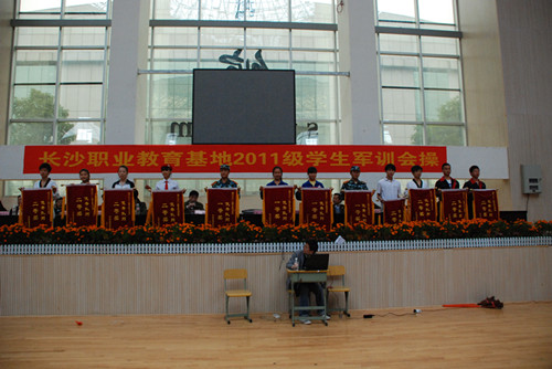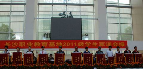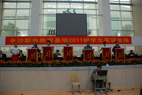 10月26日上午,长沙市职业教育基地2011级学生军训会操比赛在长沙职业教育基地体育馆隆重举行,来自职业教育基地的六所职业学校代表队参加了竞赛。我校代表方阵整齐划一的队列动作、嘹亮的军歌声以及飒爽的军姿充分展示了职高生的风采,自选项目表演中我校选送的激情锣鼓训练有素、掷地有声、博得赛场阵阵掌声,赢得评委高度赞誉。