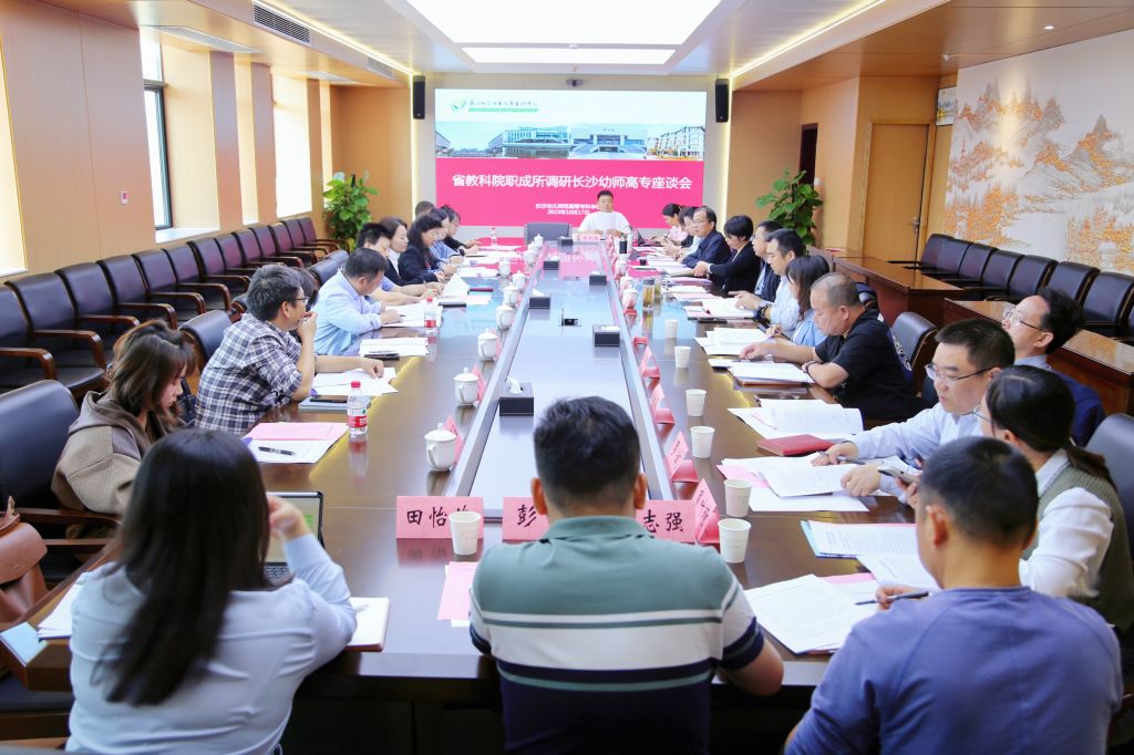 10月17日上午9:30,湖南省教育科学研究院副院长王江清、职业教育与成人教育研究所副所长李琼等一行10人到我校调研和指导工作,校长李毅、副校长文孟飞、党委委员兼学前教育学院院长阳艳波、科研处处长何曙光、教务处处长刘勇及三位副处长、各二级学院院长和教学副院长等参加了调研座谈会,会议由文孟飞主持。