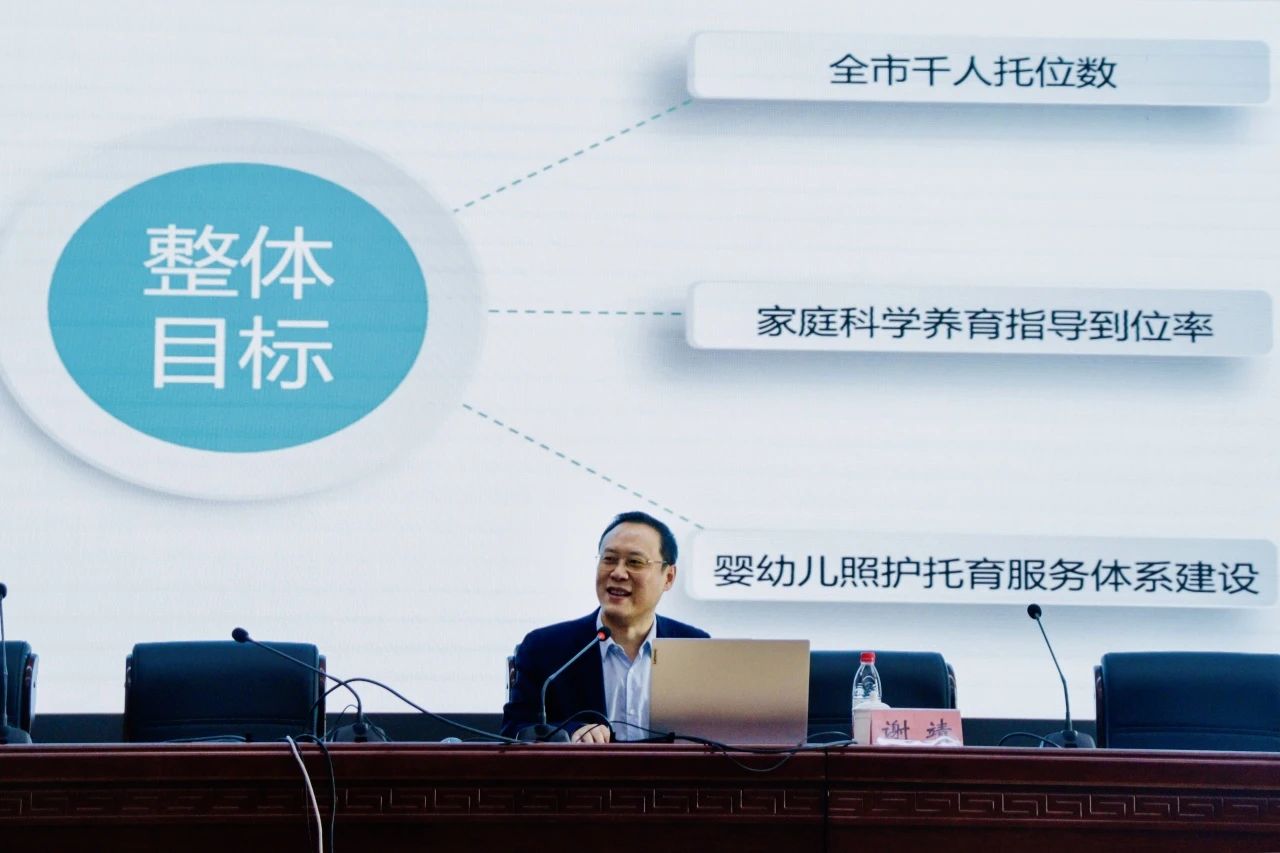 长沙市卫生健康委员会人口家发处处长谢靖从当前人口发展的趋势性特征和突出问题出发,介绍了长沙市在国家文件精神的指导下,以政府主导、卫健牵头、部门协同、社会参与相配合的方式,大力推进婴幼儿照护服务体系的完善,不断提高早教托育事业发展水平,努力解决广大育龄群众的切实难题,提升人民群众的获得感和幸福感,助推人口高质量发展。