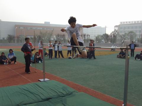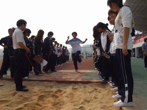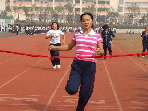 赛场上体育健儿们挥洒汗水,力争荣耀。看,裁判员“预备---跑”一声令下,100米短跑中,运动员如离弦箭似的冲向前方;1500米长跑选手虽筋疲力尽,但在同学的鼓励下,咬紧牙关尽力往前冲,直到迈向终点。听,那边赛场传来阵阵欢呼声,原来是1001班邓刚飞,如燕子穿梭,完全飞到横杆之上再次越过1.44米的新高度,用双腿形成斗志与力量的夹角。瞧,1002班的邓朴,在跳远项目中,轻盈的起跳动作,空中的走步表演, 引起阵阵惊叹,落地的瞬间,现场一片沸腾。其中1004班的李玲同学获得100米和跳远的双项冠军,1001班邓刚飞获得800米和跳远的冠军,他们成为了运动员中最为耀眼的明星。