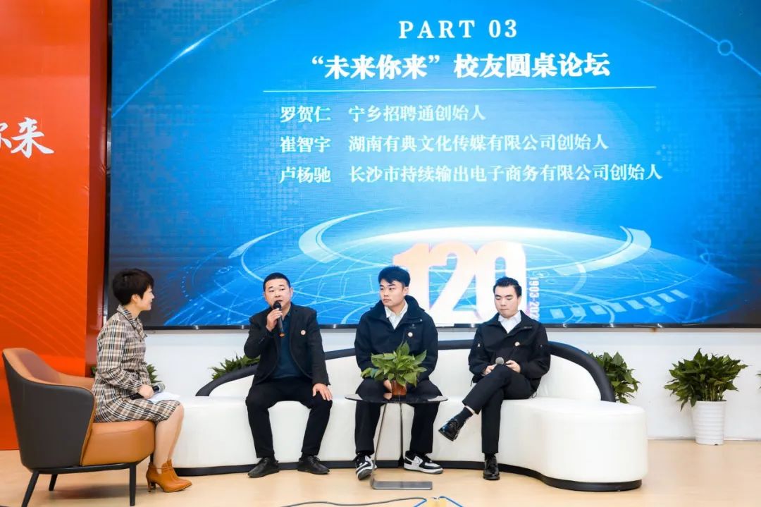 “来到长沙幼师高专学习是一个正确的选择!”校友罗贺仁动情地说道。“未来你来”—校友圆桌论坛环节,罗贺仁从学校师资、学校环境、未来就业方向三个方面向学弟学妹们诠释长沙幼师高专的辉煌,增强了长沙幼师高专学子的自豪感。崔智宇告诉学弟学妹们“读书是最幸福的时光”,希望大家珍惜读书的时光,在大学这个“实验室”里精进专业知识,丰富见识见闻,全面发展能力,加强实践历练,为实现梦想蓄能,为书写人生新篇章蓄力!“创业是个具有挑战性的过程,学会团队合作是成功的关键,团队精神是企业的精神支撑、是成功的秘笈。”卢杨驰从自身创业经历告诫学弟学妹们团队合作的重要性,学会运营企业精神价值是成功的关键要领。