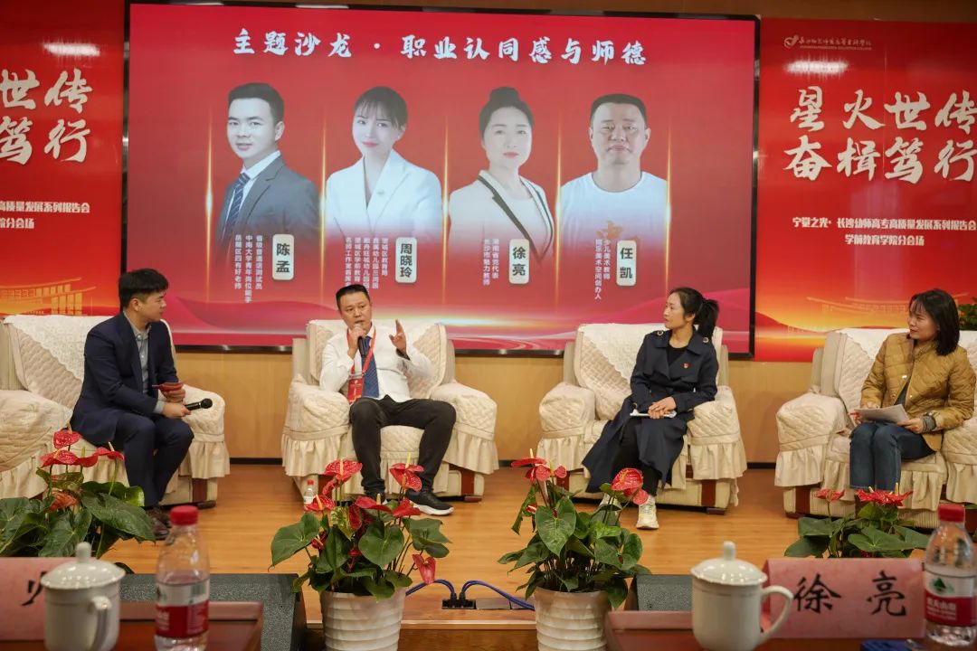 高质量发展论坛艺术学院分会场舞蹈类专场以沙龙的方式开展,邀请到周婉丹、张子月、李寅三位老师。周婉丹育人无数、桃李芬芳,她现场传授实操技艺,鼓励未来的艺术教师们要秉承严谨治学的原则,以学生为中心,潜心雕琢。
