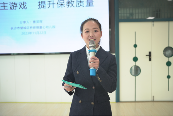 童心幼儿园行政班子基于《2023年长沙市农村幼儿园园长培训班下园观摩需求调研》结果,从“教师队伍、自主游戏、幼小衔接、园所管理”四大板块与学员面对面进行交流。他们根据自身实践经验,结合童心幼儿园实际,一一解答学员困惑,共探农村幼儿园发展中的难点与痛点问题,共话农村学前教育优质发展之路。