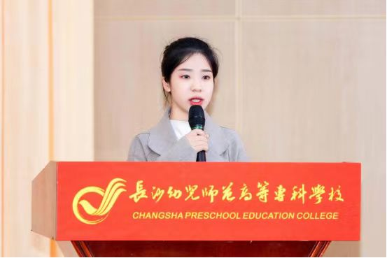 宁乡市双凫铺中心幼儿园园长谢钰婷代表全体学员汇报了学习情况。谢钰婷聚焦培训学习内容,汇报了学习收获,并承诺作为一名农村幼儿园园长将持续提高政治能力,强化责任担当;努力做农村学前教育的领跑者,向下扎根,向上成长,全力办好人民满意的幼儿园。