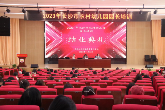 11月24日,“2023年长沙市农村幼儿园园长培训班”结业典礼在神彩争霸8安卓下老版本图书馆报告厅顺利举行。继续教育与国际交流学院院长闵捷、教师张鲁明、曹婷及长沙各区县(市)150名农村幼儿园园长参加了结业典礼。典礼由张鲁明主持。