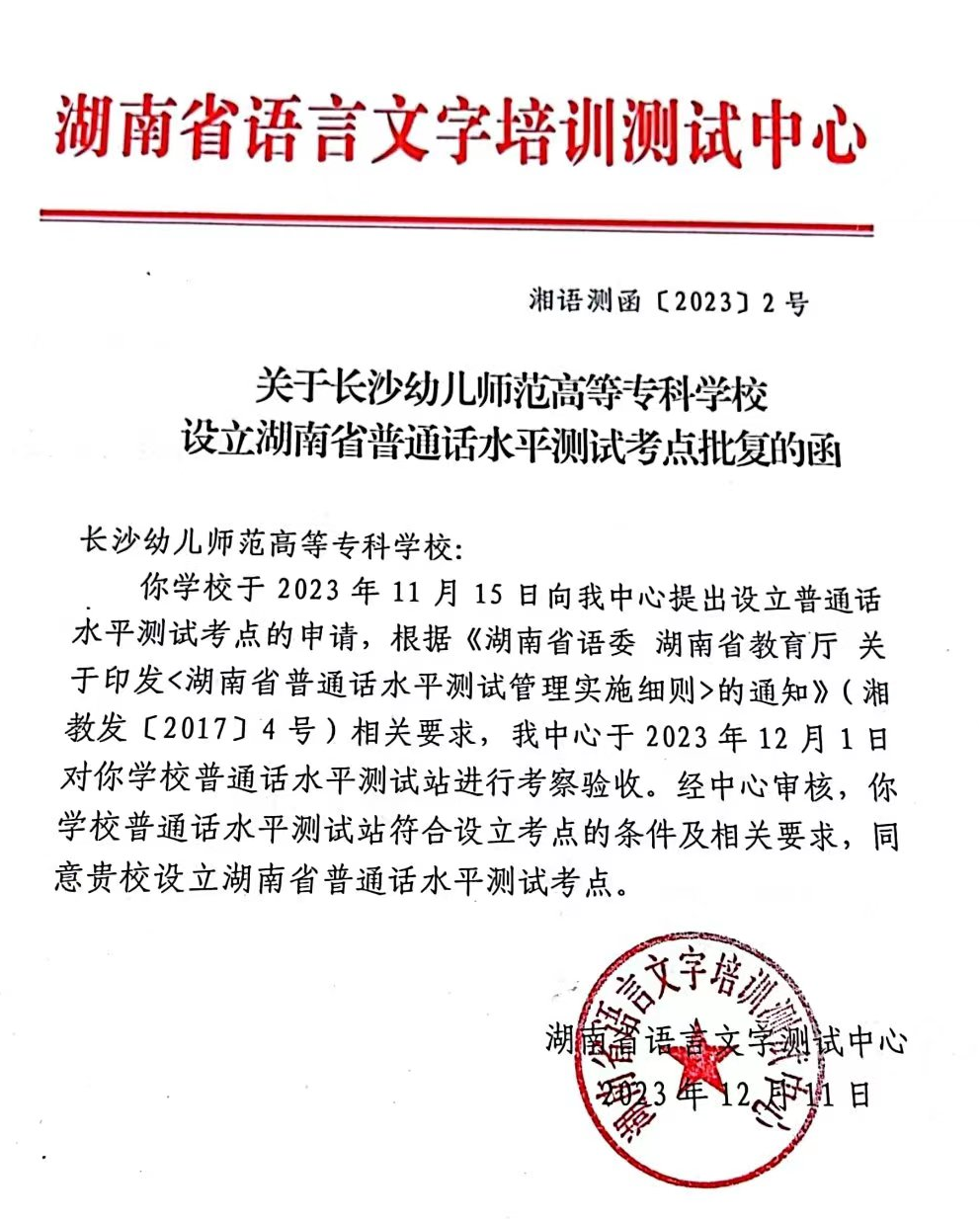 12月11日,湖南省语言文字培训测试中心批复,同意设立神彩争霸8安卓下老版本普通话水平测试工作站。