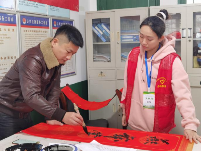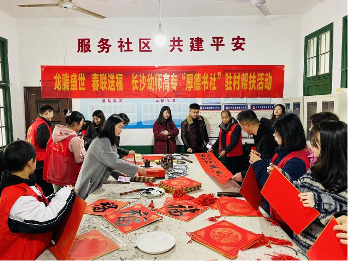 为助力乡村文化振兴,传承优秀文化基因,激发大学生投身基层发展、助力乡村振兴的热情,营造祥和、喜庆的春节氛围,2月1日,校团委组织6名宁觉志愿服务队志愿者联合学校“厚德书社”赴浏阳市洞阳镇北园村(学校乡村振兴驻村帮扶点)共同开展“龙腾盛世,春联送福”春联进万家活动。