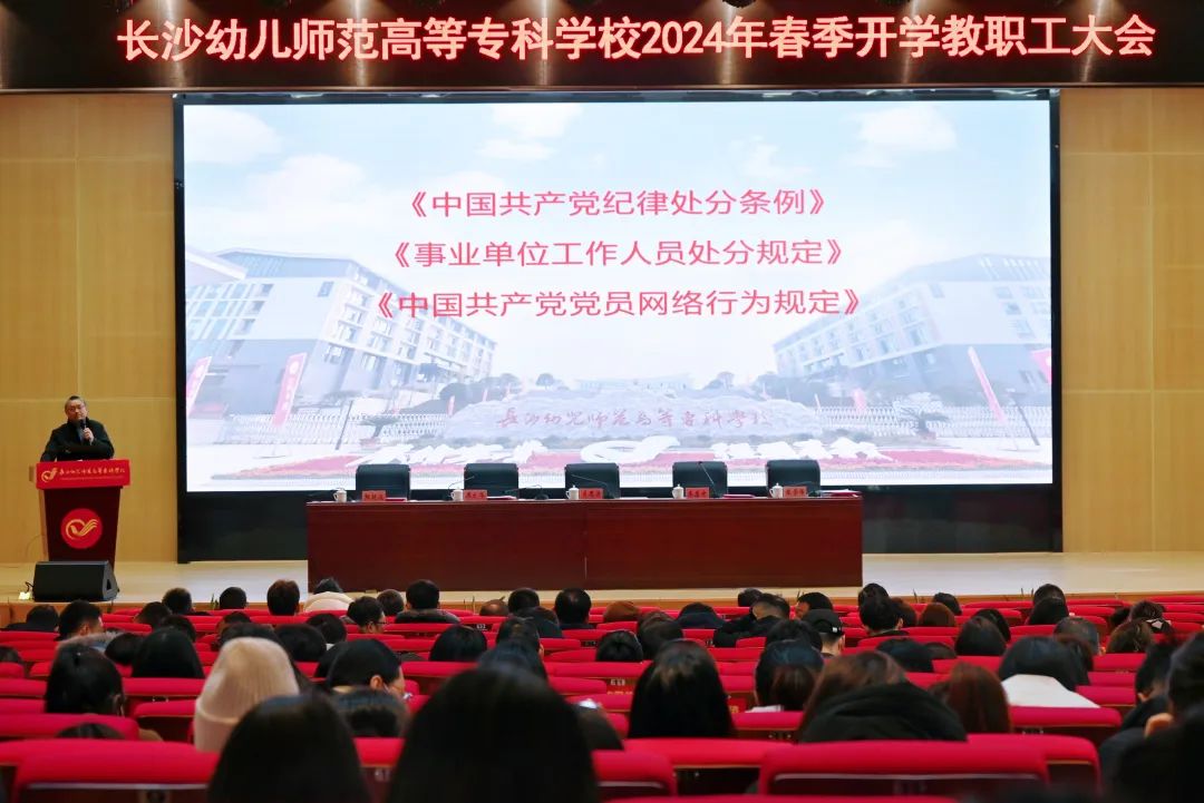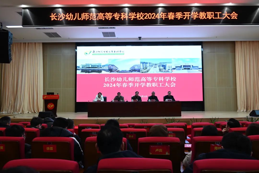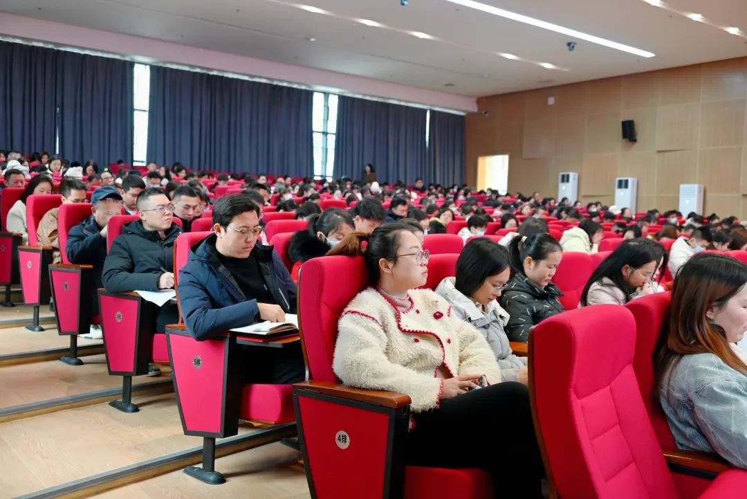 为总结过去一年的成绩,明确2024年工作思路,确保各项工作有序开展,3月1日,我校2024年春季教职工大会在图书馆报告厅举行,会议由副校长周文华主持,学校领导班子及全体教职工参加会议。
