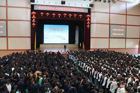 近日,我校学生科组织召开本学期全校学生纪律大会。学生科科长刘建乐,保卫科科长熊石林,学生副科长周曦出席了纪律大会。