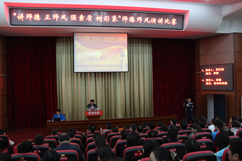 为大力弘扬我校教师“爱岗敬业、无私奉献”的职业情操和“教书育人、为人师表”的精神风貌,积极营造师德师风建设良好氛围,11月5日,我校举行“讲师德、正师风、强素质、树形象”师德师风演讲比赛活动,全体教职工及部分毕业班学生参加了活动。