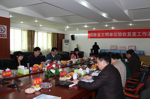 学校党委书记左玉辉向验收复查小组做了工作汇报:近三年来,学校先后荣获湖南省职业教育先进单位、湖南省安全文明校园、湖南省学生管理先进单位、湖南省德育工作先进单位、湖南省工会工作先进单位、湖南省学校校务公开民主管理先进集体、湖南省信息化建设优秀网站,学校工会被评为全国模范职工之家,学校团委被授予五四红旗团委。学校连续五年评为长沙市教育系统绩效考核一等奖。