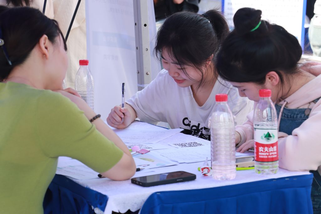 招聘会现场人潮涌动,用人单位设展架、发招聘宣传彩页,吸引毕业生前来咨询,到场学生积极投递简历与用人单位面对面沟通。现场还吸引了非毕业班的学生前来观摩,提前了解招聘流程和岗位需求,做好自我职业生涯规划。为助力学生顺利求职,招聘会现场设“求职加油站(简历问诊)”,涵盖简历制作、面试技巧、就业政策、就业心理等指导服务。