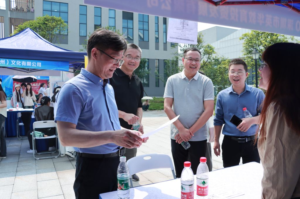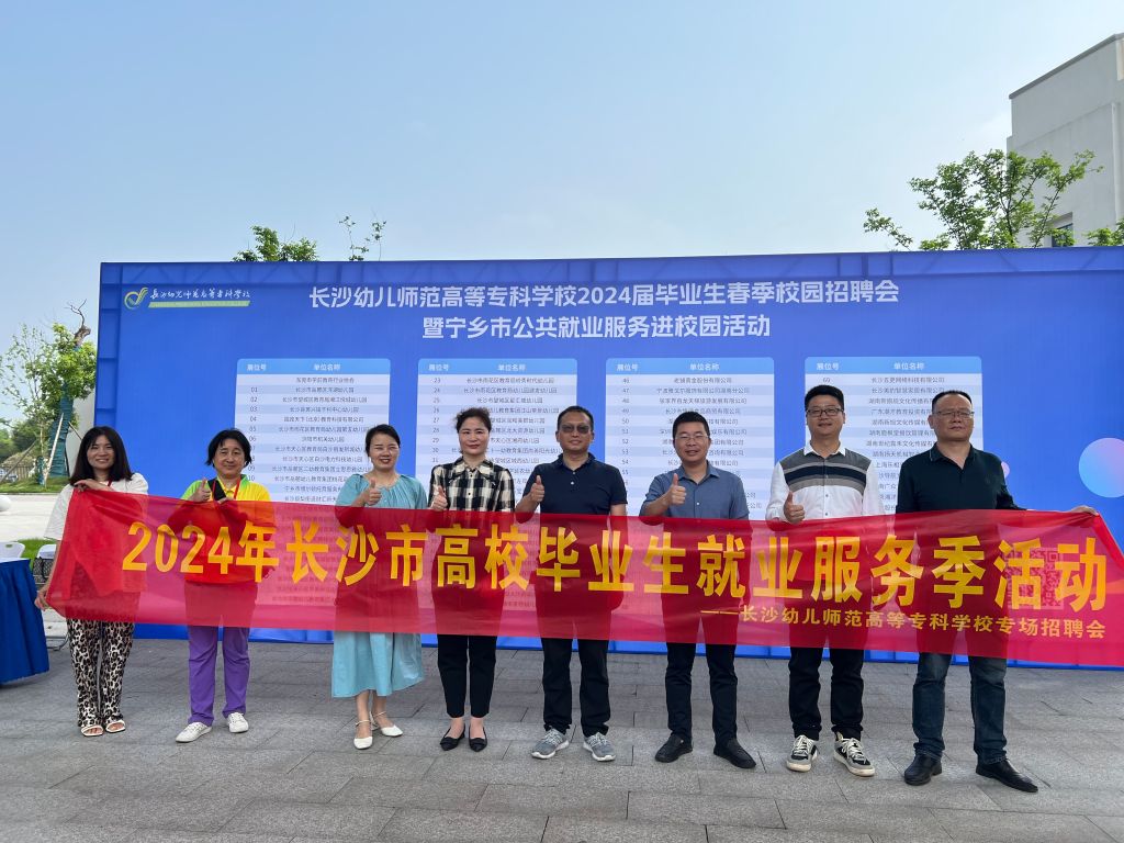 2024届毕业生春季校园招聘会暨宁乡市2024年公共就业服务进校园活动,由招生就业处联合宁乡市人力资源和社会保障局主办,学前教育学院、艺术学院、信息技术学院承办,分线上线下两个场次,吸纳东莞市学前教育行业协会、长沙市望城区教育局直属幼儿园三润园、浏阳市机关幼儿园、湖南梯田科教文化有限公司、长沙幸福里托育服务有限公司、湖南壹森网络有限公司、老铺黄金股份有限公司等113家用人单位,其中包括多家校友单位,提供就业岗位1326个,吸引900多名学生参与。学校党委书记肖思源、党委副书记兼纪委书记李慧中、宁乡人社就业服务中心主任王遏飞、宁乡市人社局就业促进科科长刘湘莲、各学院党总支书记、组织人事处、党政办、招生就业处等部门负责人出席活动,并与用人单位和毕业生现场交流。