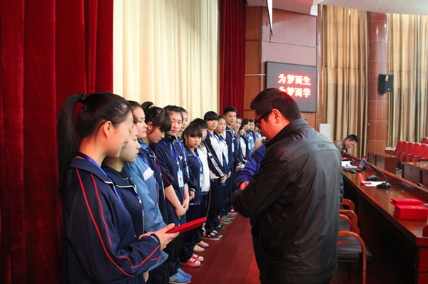 校长助理兼学生科科长周文华为学生干部颁发聘书