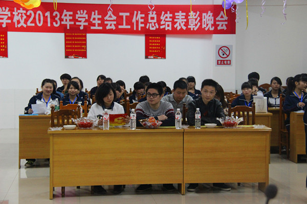 在2013年学生会工作总结表彰晚会上,团委书记兼学生科副科长周曦做了热情洋溢的致辞。学生会、团委、社团负责人对2012年本部门工作进行了总结,对2013年的工作进行了展望。晚会在《相信未来》诗歌朗诵中拉开序幕,歌唱《祝福祖国》充分体现了同学们对祖国的热爱,诗歌朗诵《以青春的名义宣誓》诠释了全体学生干部忠诚奉献、青春无悔的铮铮誓言,情景剧《我是未来的教师我为自己代言》展现了同学们争做有理想、有责任、有志向、有追求、有贡献的当代中职生的良好风貌。