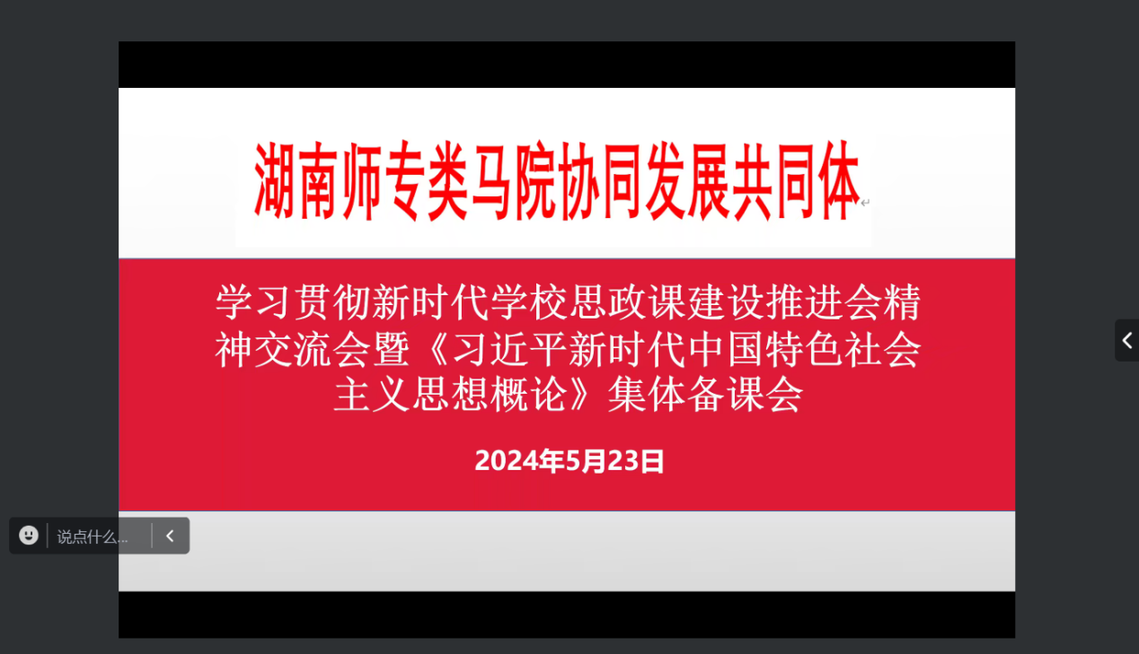 2024年5月23日,神彩争霸8安卓下老版本马克思主义学院组织举办了湖南师专类马院协同发展共同体“学习贯彻新时代学校思政课建设推进会精神交流会暨《习近平新时代中国特色社会主义思想概论》(以下简称《概论》)集体备课会”(第一期)第一讲。本次备课由领航专家湖南工业大学马院院长李正军教授主讲,长沙幼师高专马院院长李立华主持,湖南师专类马院协同发展共同体11所学校80多名老师参加。