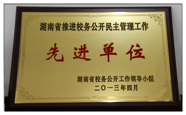 在刚刚结束的湖南省校务公开民主管理工作表彰大会上,我校被评为湖南省校务公开民主管理工作先进单位。
