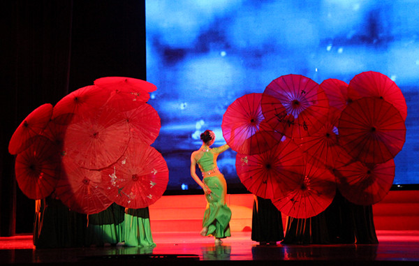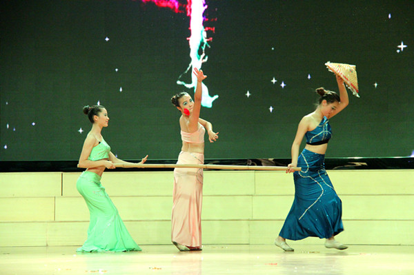 本次晚会主题为“彼岸很远·以舞为帆”,全部节目由11级舞蹈专班的老师和同学共同编排完成,一场舞蹈的盛宴呈现眼前:扎实的基本功展示,悠扬流畅的蒙古舞,婀娜多姿的傣族舞,充满张力的现代舞,活力四射的啦啦操,灵动奔放的藏族舞,欢快热情的东北大秧歌……各类舞种都被同学们演绎得神形兼备,韵味十足,充满了青春的活力与美的韵致。除此之外,舞蹈专班的同学们还颇有喜剧天分,表演的小品《最炫面试风》,幽默诙谐,引得在场观众阵阵笑声,晚会的气氛被不断推向高潮。表现抗战题材的大型舞蹈《中国妈妈》,同学们用肢体语言生动演绎了战争的残酷与母爱的伟大;记录雅安地震的现代舞《呼唤》再现了地震的无情与生命的呐喊,艺术的感染力让现场观众眼眶湿润……大型舞蹈蕴含着深沉的命题,同学们精彩的演出充分表达了自己对生命的感悟。