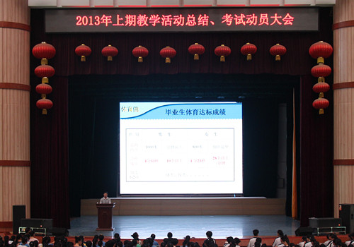 6月24日上午,长沙市信息技术学校2013年上学期教学活动总结以及期末考试动员大会在汇美馆举行。校长助理、学生科科长周文华,保卫科科长、学生科副科长熊石林,教务科副科长陈郁,学生科副科长宋黎黎等出席会议。会议由教务科科长周建军主持。
