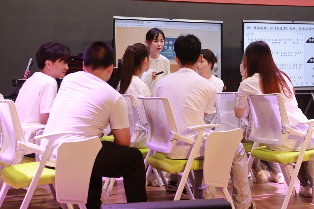 6月20日下午,艺术学院教师李敏、公共课部教师罗星进行示范教学。李敏主讲《声乐基础》,课程设计中融合音乐、历史、文化等元素,使学生实现知识与技能的双重提升。罗星主讲《下肢力量的功能性练习与教学指导》,运用有趣且实用的下肢力量练习方法培养学生良好的运动习惯。