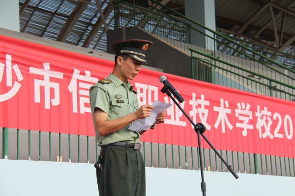 为强化学生国防意识,培养吃苦耐劳精神,磨砺学生坚强的意志,学校经过精心准备与筹划的军训今天拉开了序幕。8月25日上午8时整,长沙市信息技术学校2013级新生军训开训仪式在职教基地田径场准时开始。仪式由校长助理兼学生科科长周文华主持,学校校长郭正良、党委书记左玉辉、副校长刘余良、纪委书记李深山、副校长李慧中以及国防科大人文学院参谋长刘坤出席开训仪式。