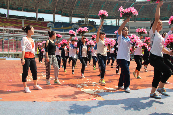 自接到上级的参演命令以来,学校领导高度重视,学生科、教务科、办公室、总务科、保卫科等科室通力配合,在暑假就派出了专业舞蹈老师参加培训。9月5日开始,学校就对参训的部分同学停课进行集训。尽管是37度的高温,尽管是下午两点的烈日,同学们还是咬紧牙关坚持下来。风雨彩虹,铿锵玫瑰。长沙市信息技术学校的同学们好样的!